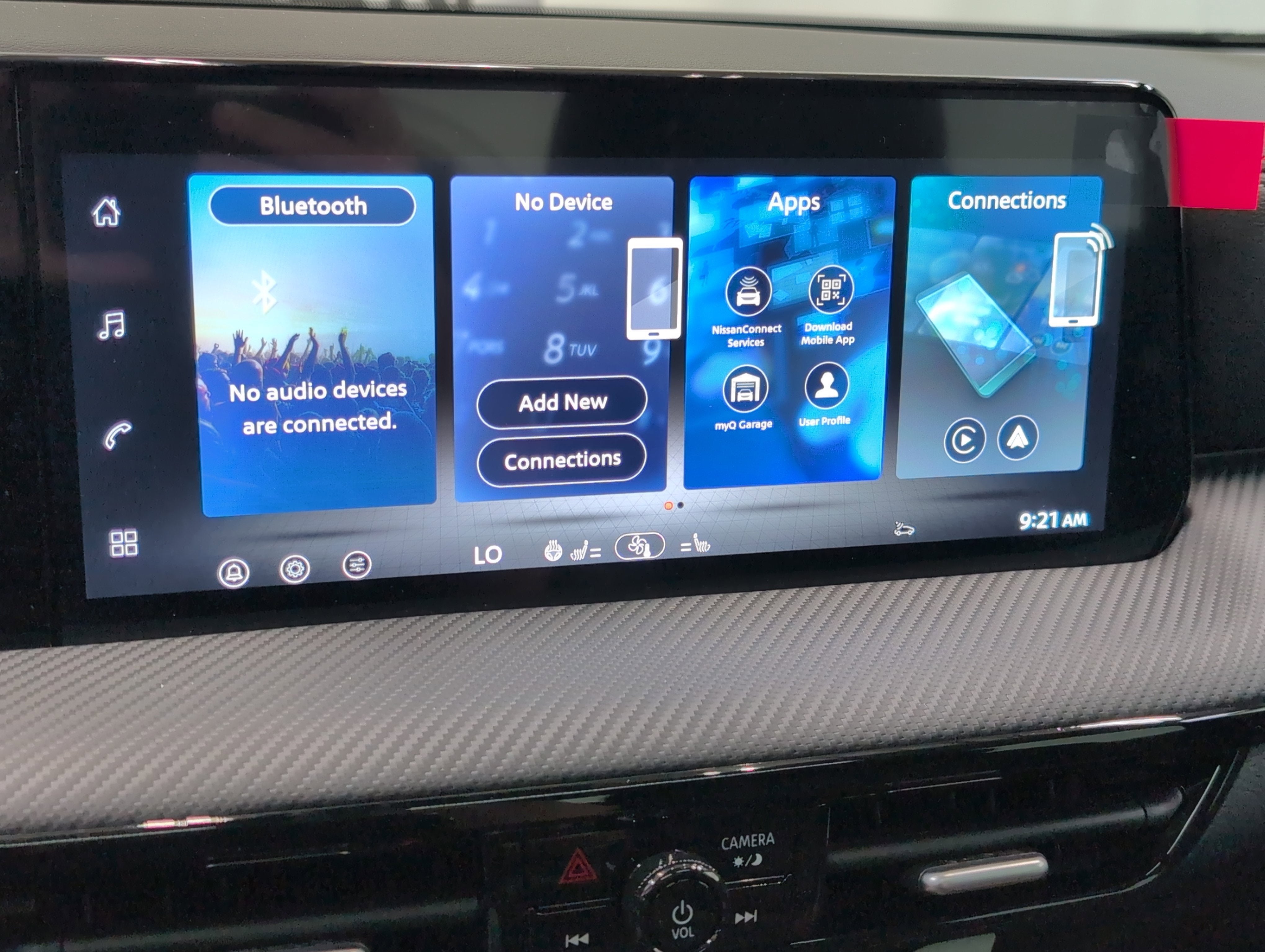 - Radio: AM/FM/SiriusXM Audio System -inc: 12.3" color touchscreen display w/6 speakers, Bluetooth® hands-free phone system, streaming audio via Bluetooth®, NissanConnect Services powered by SiriusXM featuring wireless Apple CarPlay, wireless Android Auto, Siri eyes free and hands-free text messaging assistant, audio and Bluetooth® steering wheel switches and Wi-Fi hotspot