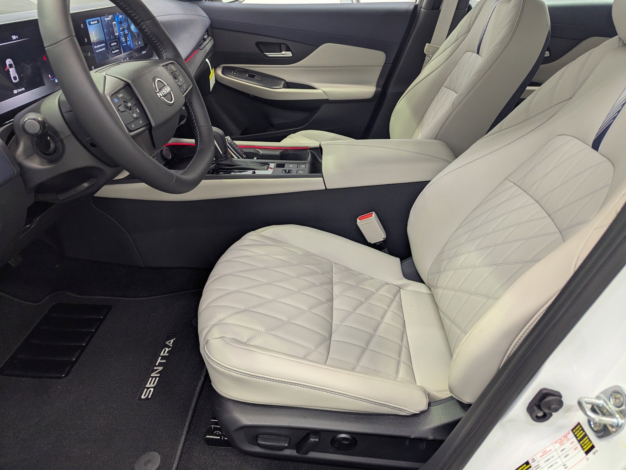 Aspen White Tricoat 2026 Nissan Sentra 4D Sedan SL CVT with Xtronic FWD 2.0L I4 DOHC SERVICE RECORDS AVAILABLE!, CVT with Xtronic, Quilted Gray Artificial Leather, 17 Machined Alloy Wheels, 4-Wheel Disc Brakes, 8 Speakers, ABS brakes, Air Conditioning, Alloy wheels, AM/FM radio: Sirius, Auto High-beam Headlights, Auto-dimming Rear-View mirror, Automatic temperature control, Brake assist, Bumpers: body-color, Delay-off headlights, Driver door bin, Driver vanity mirror, Dual front impact airbags, Dual front side impact airbags, Electronic Stability Control, Emergency communication system: NissanConnect(R) Services powered by SiriusXM(R), Floor Mat Package, Four wheel independent suspension, Front anti-roll bar, Front Bucket Seats, Front Center Armrest, Front dual zone A/C, Front reading lights, Fully automatic headlights, Garage door transmitter, Heated door mirrors, Heated Front Bucket Seats, Heated front seats, Heated steering wheel, Illuminated entry, Illuminated Kick Plates, Knee airbag, Leather steering wheel, Low tire pressure warning, Occupant sensing airbag, Outside temperature display, Overhead airbag, Overhead console, Panic alarm, Passenger door bin, Passenger vanity mirror, Power door mirrors, Power driver seat, Power moonroof, Power steering, Power windows, Premium Paint, Quilted TailorFit Synthetic Leather Seat Trim, Radio data system, Radio: AM/FM with RDS/MP3, Rear anti-roll bar, Rear seat center armrest, Rear side impact airbag, Rear window defroster, Remote keyless entry, Security system, Speed control, Speed-sensing steering, Split folding rear seat, Steering wheel mounted audio controls, Tachometer, Telescoping steering wheel, Tilt steering wheel, Traction control, Trip computer, Turn signal indicator mirrors, Variably intermittent wipers, Wireless Apple CarPlay/Wireless Android Auto, CVT with Xtronic, Quilted Gray Artificial Leather. $1,220 below Invoice!