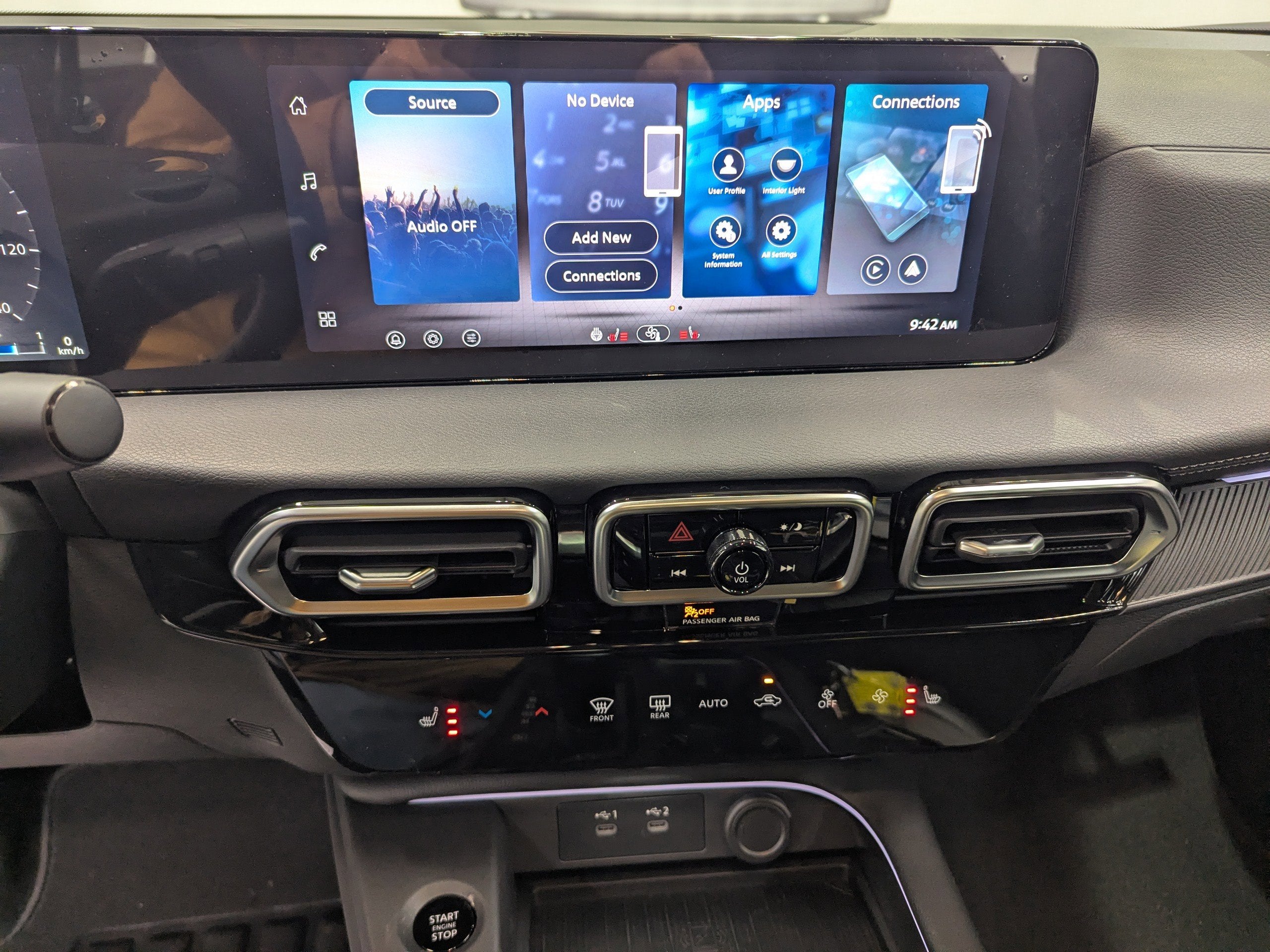 - Radio: AM/FM w/RDS/MP3 -inc: 4 speakers, 12.3" NissanConnect multimedia center display, Bluetooth® hands-free phone system, streaming audio via Bluetooth®, hands-free text messaging assistant, Siri Eyes Free, Google Assistant voice recognition, wireless Apple CarPlay and Android Auto and (2) front USB connection port (type C)
